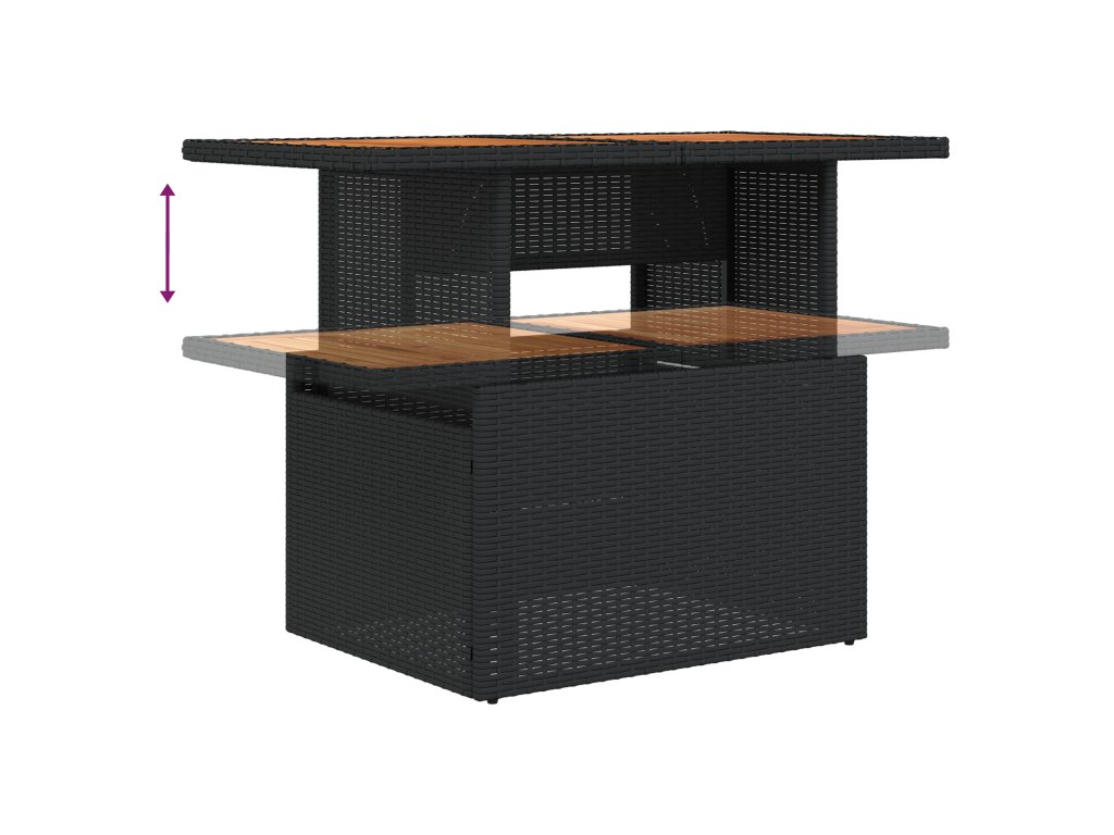 - Materiál: Poly ratan a ocel s práškovým nástřikem a masivní akáciové dřevo