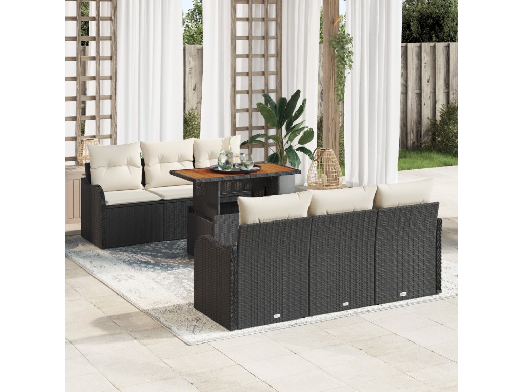 Sada zahradních pohovek 7 pcs Černá a krémová polyratan