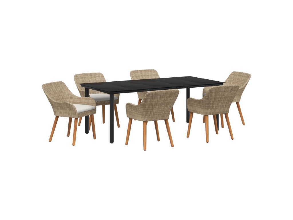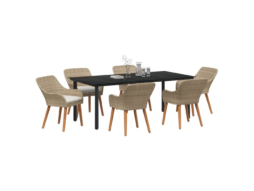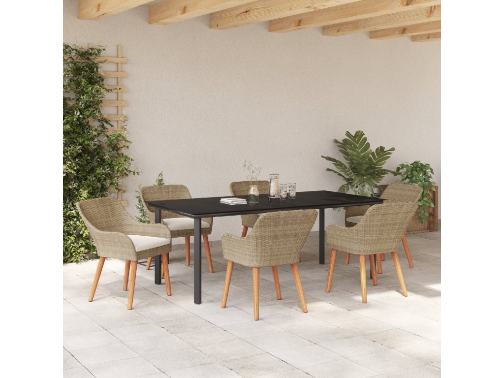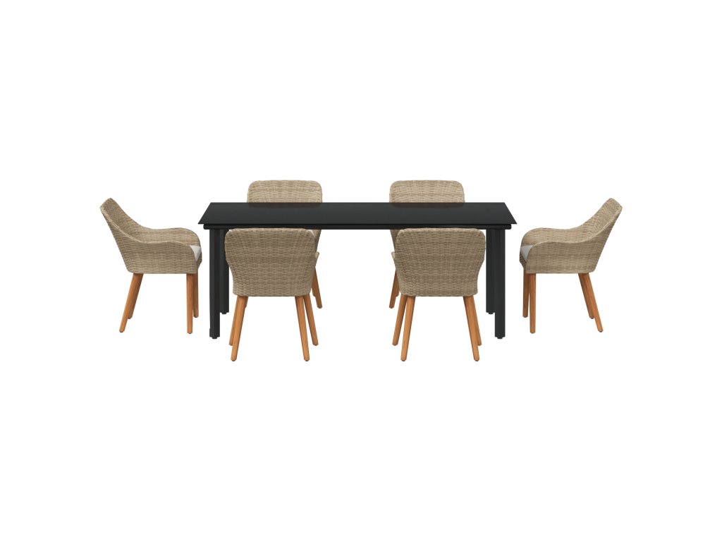 Zahradní jídelní souprava s polštářem 7 pcs Béžová polyratan