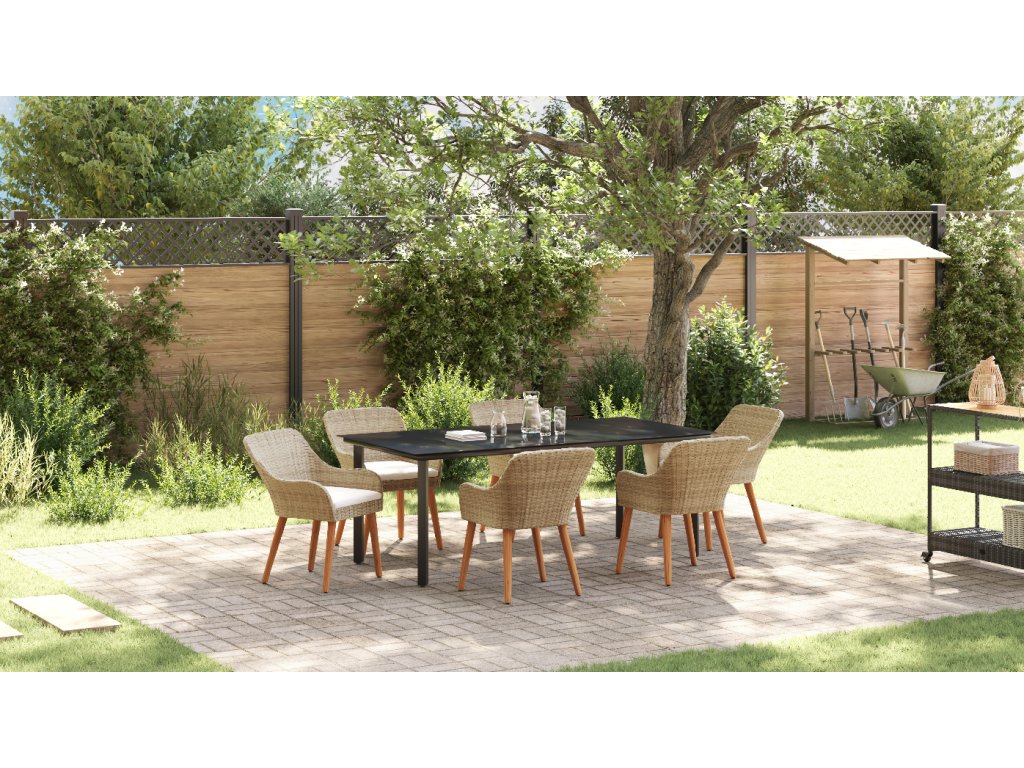 Odolné materiály: Díky kvalitnímu poly ratan a silný oceli, tato sada vydrží všechno, suitable for co počasí přinese po celý rok. Je navržená tak, aby odolávala dešti, UV paprskům a opotřebení, takže ji můžeš bez obav používat na venkovní akce. Můžeš se na ní spolehnout, že bude stabilní a bude vypadat skvěle i po mnoha posezení. UV-odolná kvalita: Tato sada má UV-odolné materiály, které ji udržují stále pěknou a silnou, brání vyblednutí na slunci. Takže vždycky bude vypadat skvěle a váš venkovní prostor zůstane čerstvej bez ohledu na roční období. Elegantní design stolu: Mrkni na skvělej patio stůl s elegantním skleněným povrchem. Snadno se čistí a vypadá skvěle, spojuje styl s praktičností, takže venkovní stolování je radost. Pohodlné sezení: Tato jídelní sada obsahuje příjemný polštáře na sezení, které mají praktické zipy, což dělá dlouhá jídla venku bezproblémový. Poly ratanový židle ne jenom dobře vypadají, ale taky jsou pohodlný, ideální na lenošení v letních dnech. Údržba a péče: Aby vaše sada zůstala v top stavu, používejte kryty, když není v provozu. To ji chrání před nepříznivým počasím a pomáhá jí dlouho vydržet. Navíc je snadná na údržbu, takže se můžeš soustředit na užívání si prostoru vaší zahrady.- Barva: Béžová