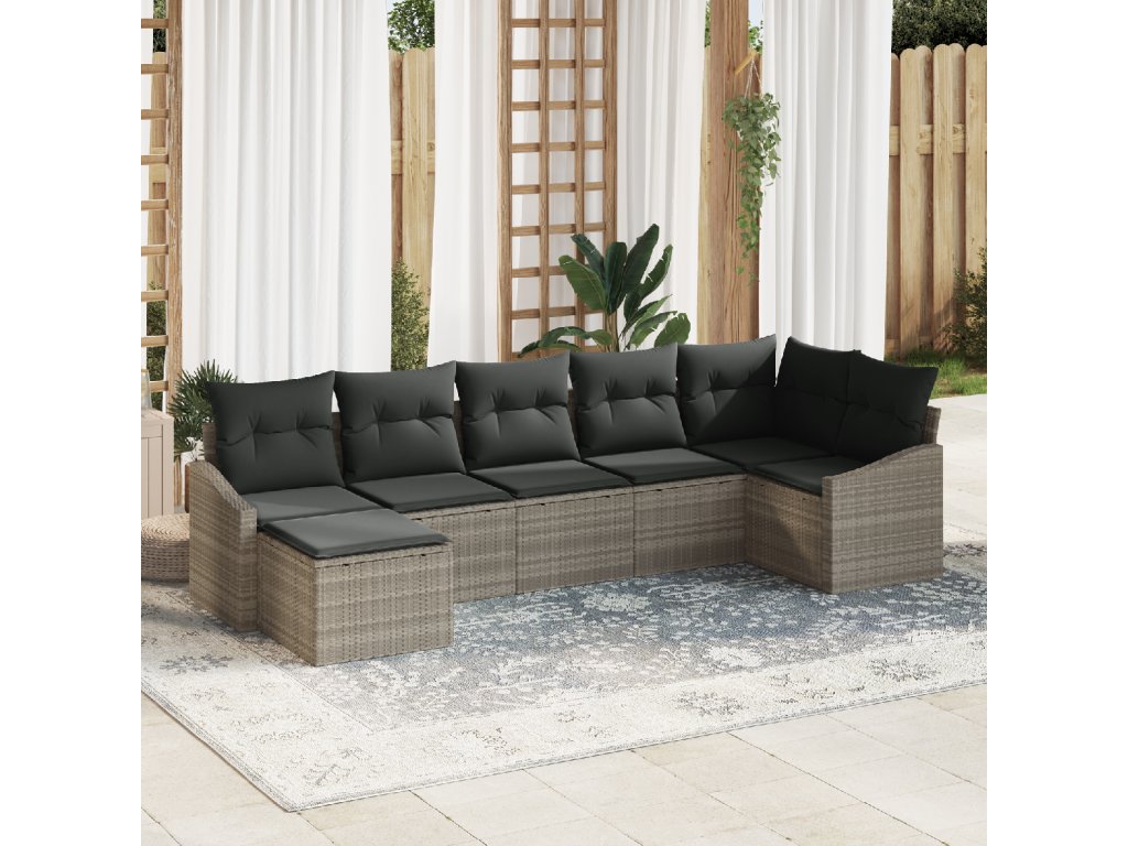 Sada zahradních pohovek s polštářem 7 pcs Světle šedá polyratan
