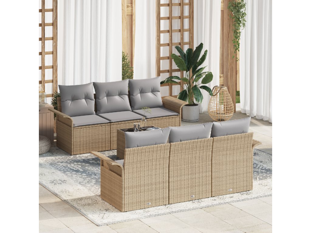 Sada zahradních pohovek 7 pcs Beige a šedá polyratan