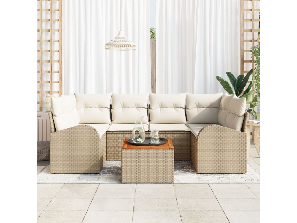 Sada zahradních pohovek 7 pcs Béžová Poly ratan