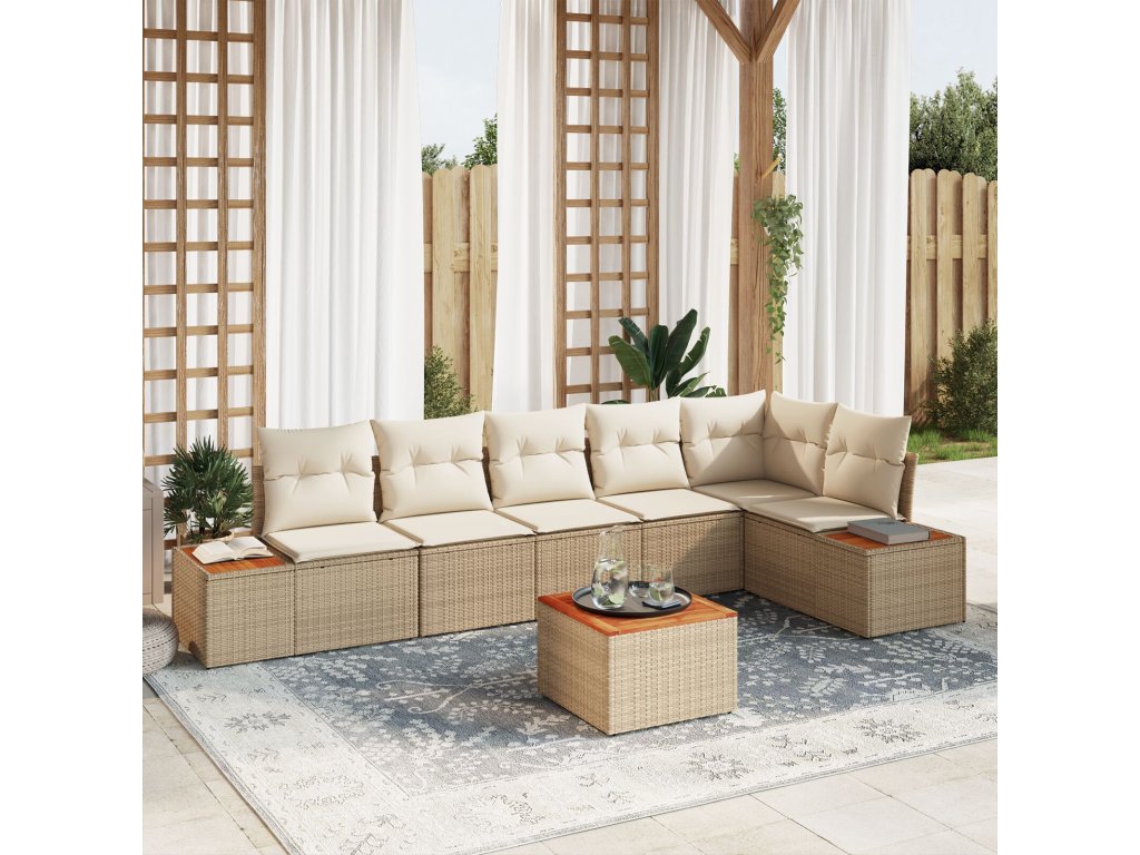 Sada zahradních pohovek s polštářem 7 pcs Béžová Poly ratan