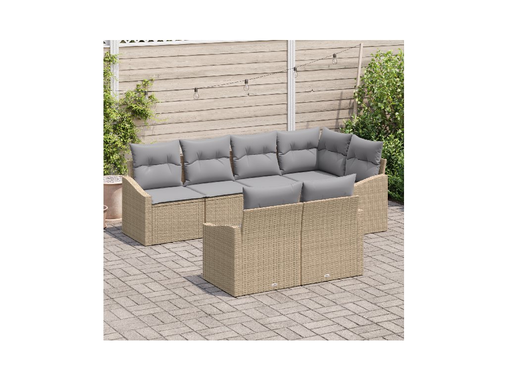 Set pohovek s polštářem 7 pcs Béžová polyratan