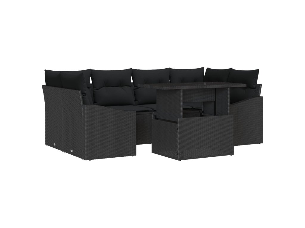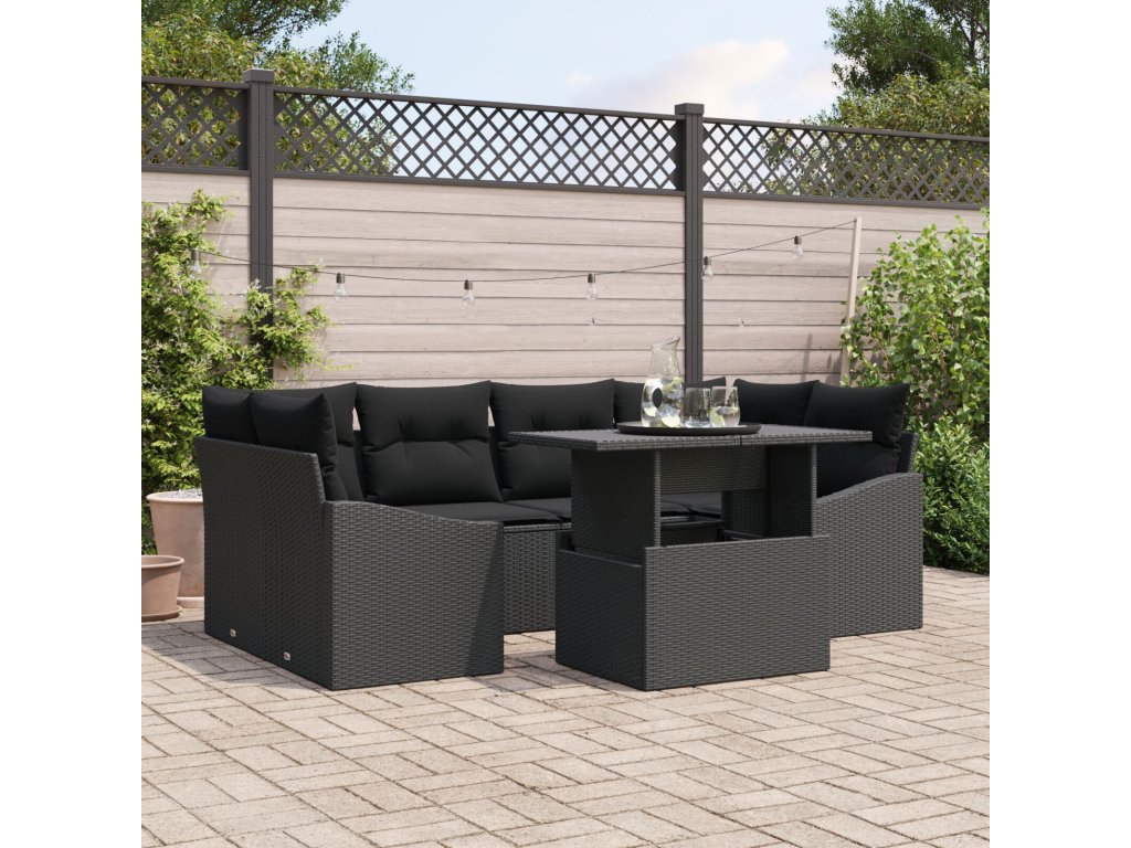 Sada zahradních pohovek s polštářem 7 pcs Černá polyratan