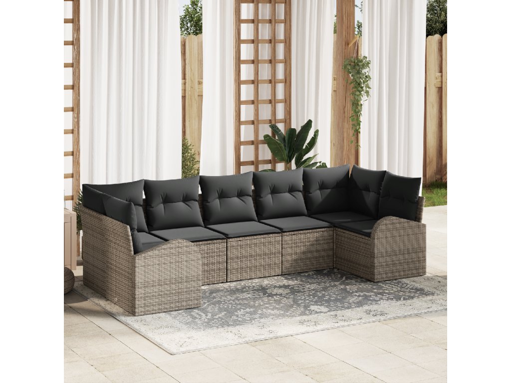 Sada zahradních pohovek s polštářem 7 pcs Šedá Poly ratan