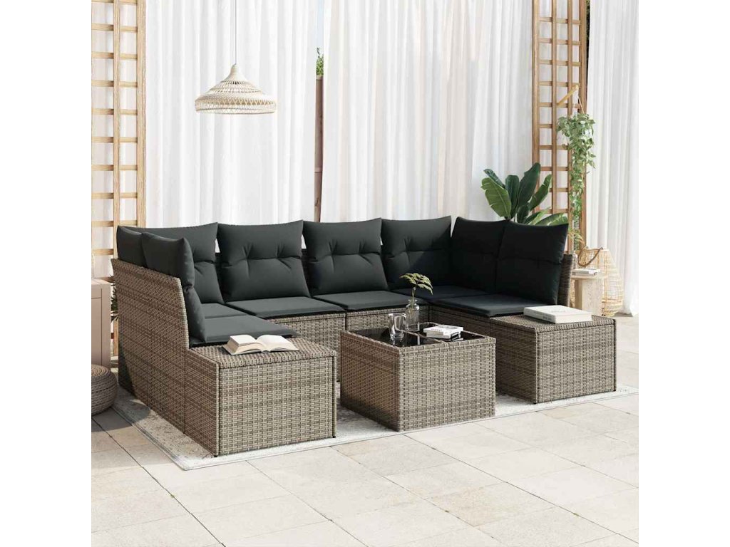 Sada zahradních pohovek s polštářem 8 pcs Šedá polyratan