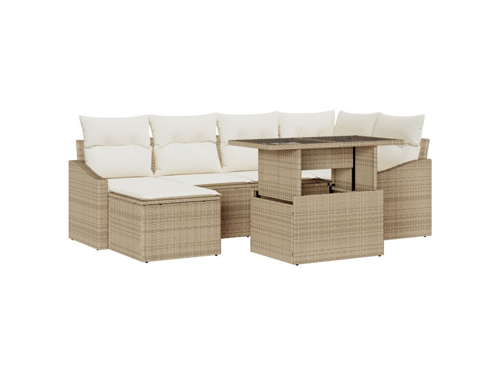 Sada zahradních pohovek s polštářem 7 pcs béžová a krémová