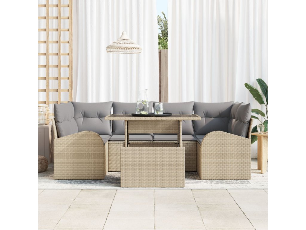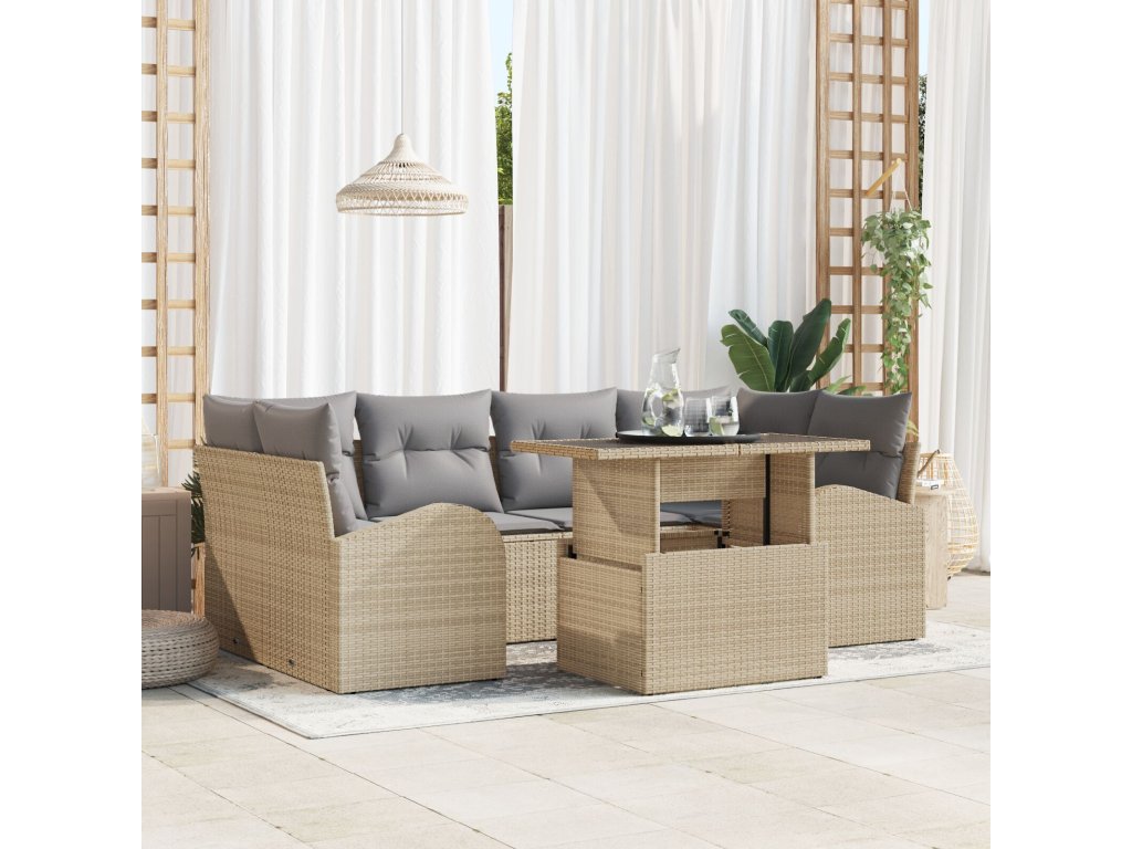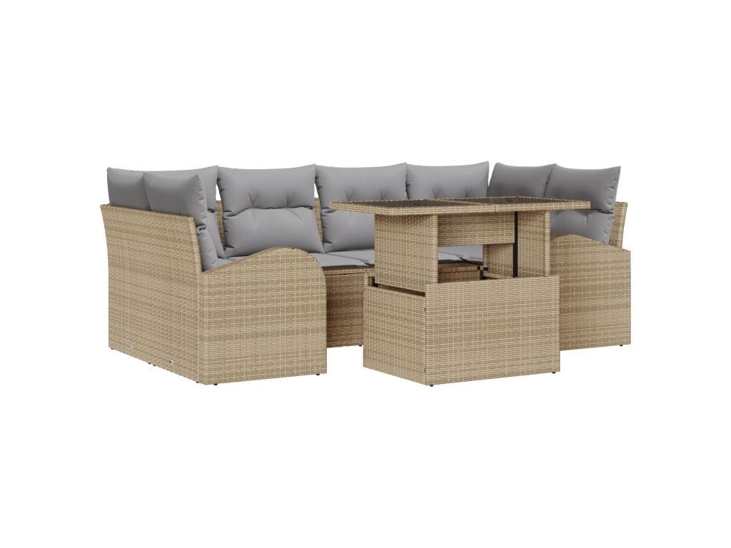 Sada zahradních pohovek s polštářem 7 pcs Béžová Poly ratan