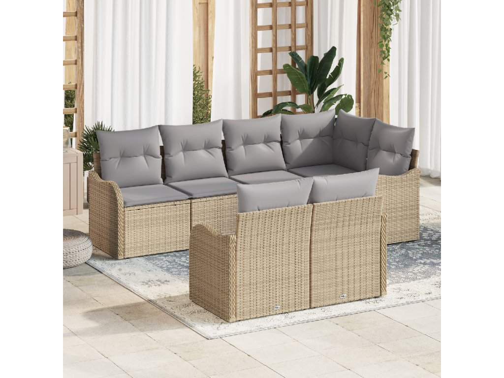 Sada zahradních pohovek s polštářem 7 pcs Béžová Poly ratan