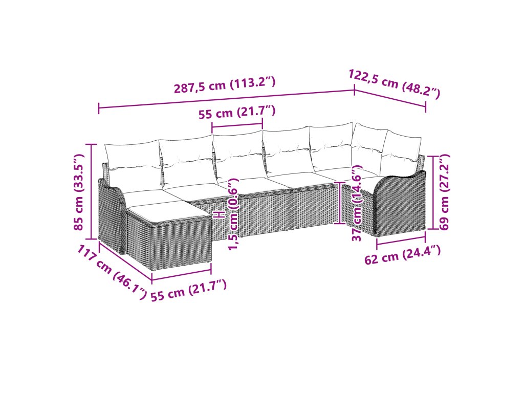 - 7 x vhodné pro polštáře na sezení: 55 x 55 cm(DxŠ)