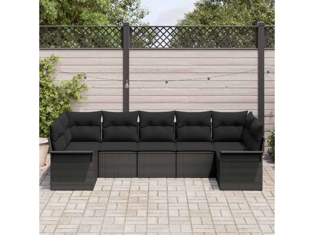 Sada zahradních pohovek s polštářem 7 pcs Černá Poly ratan