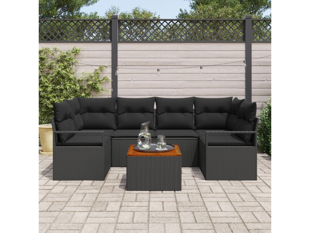 Sada zahradních pohovek s polštářem 7 pcs Černá Poly ratan