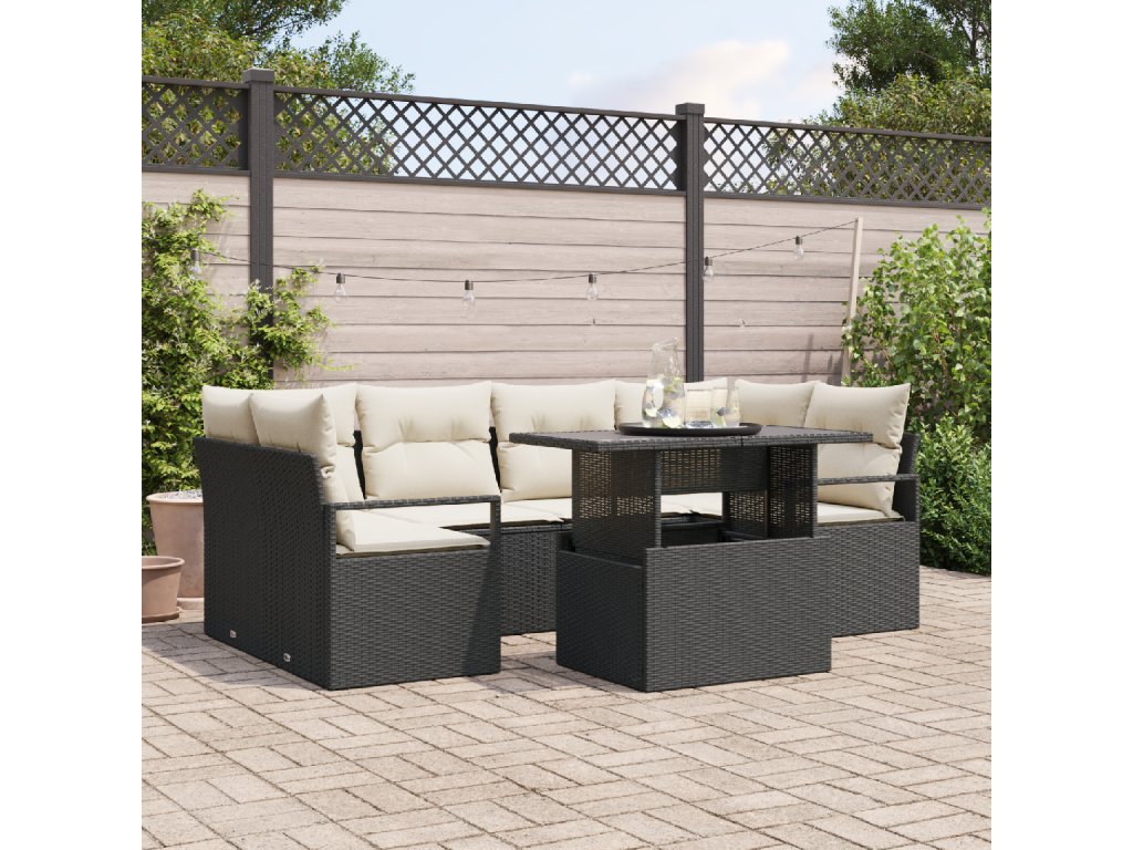 Sada zahradních pohovek s úložištěm 7 pcs Černá polyratan