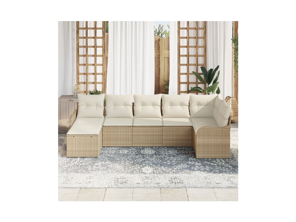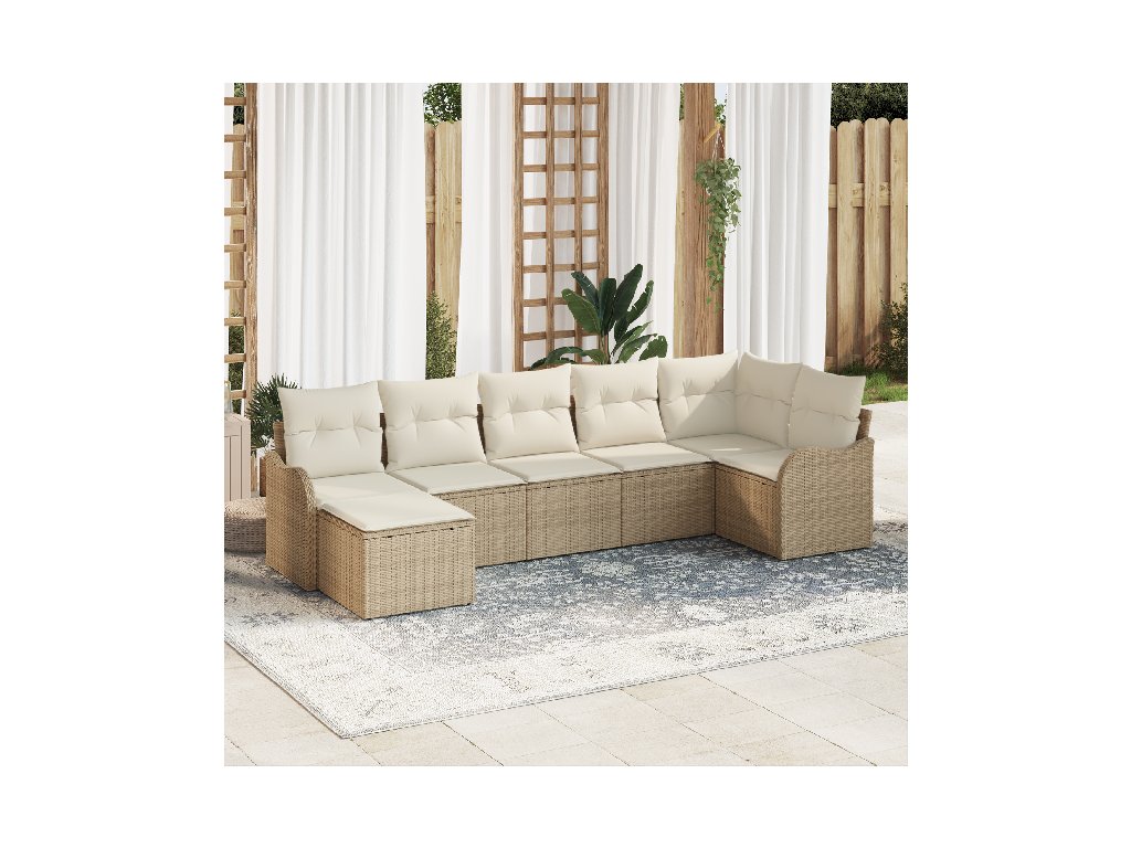 Sada zahradních pohovek 7 pcs Béžovo-bílá Poly ratan