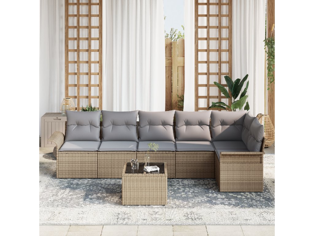 Sada zahradních pohovek s polštářem 7 pcs Béžová Poly ratan
