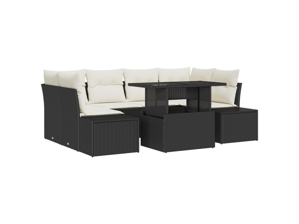 Set pohovek s polštářem 7 pcs Černá a krémová polyratan