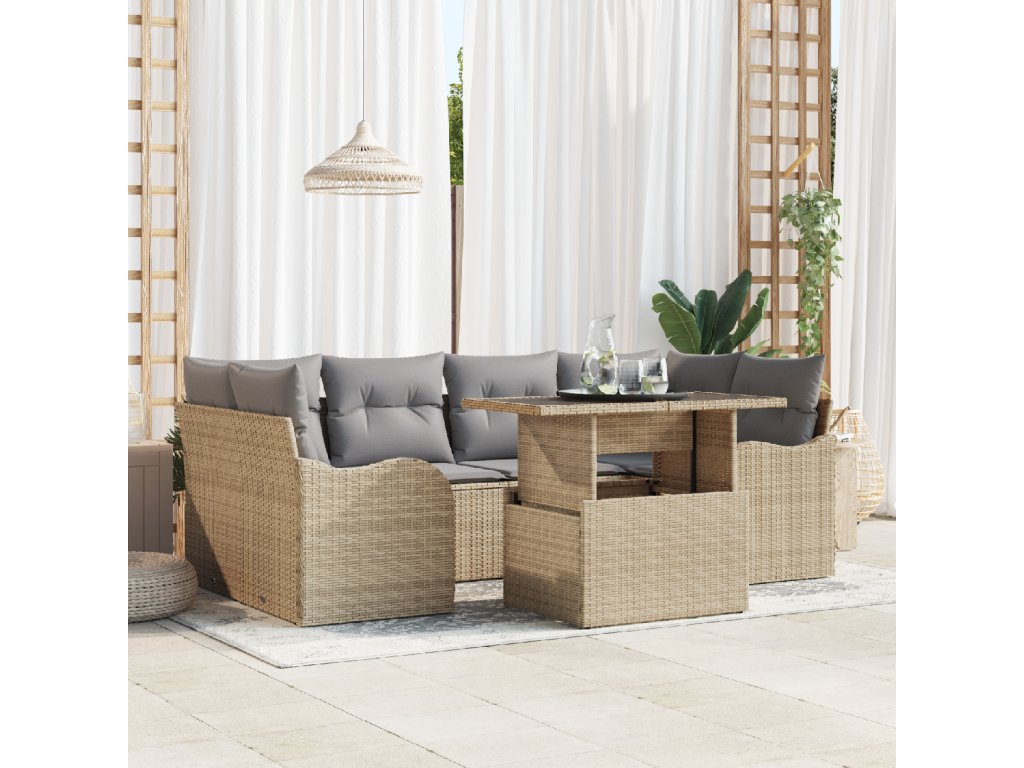 Sada zahradních pohovek s polštářem 7 pcs Béžová Poly ratan