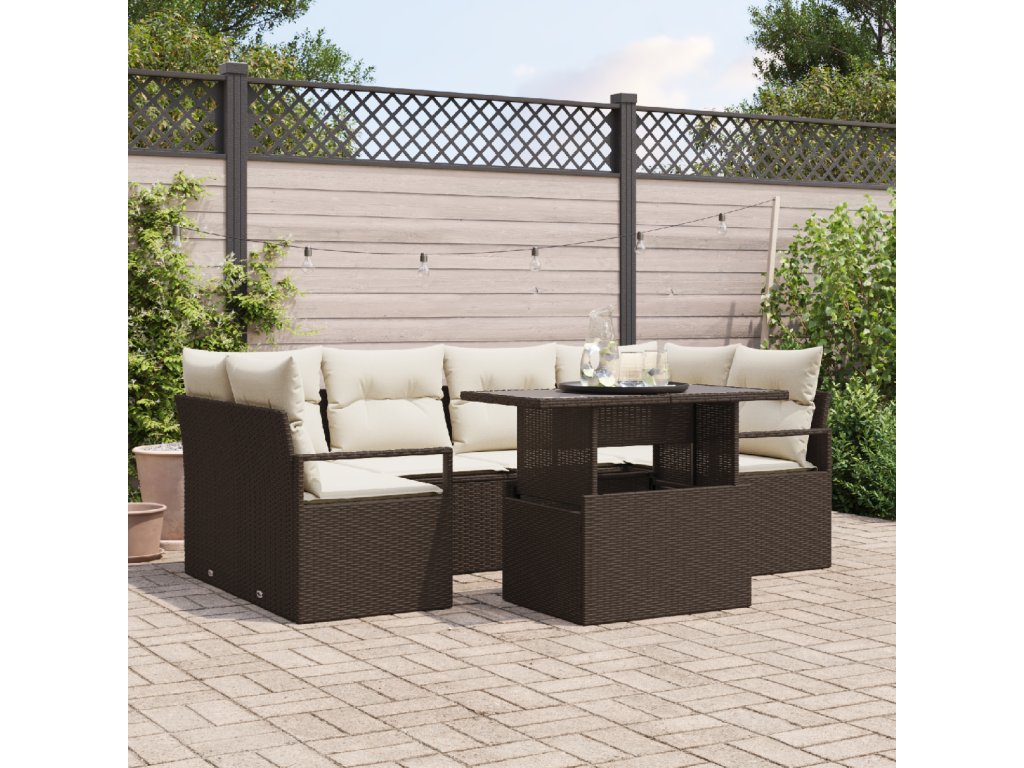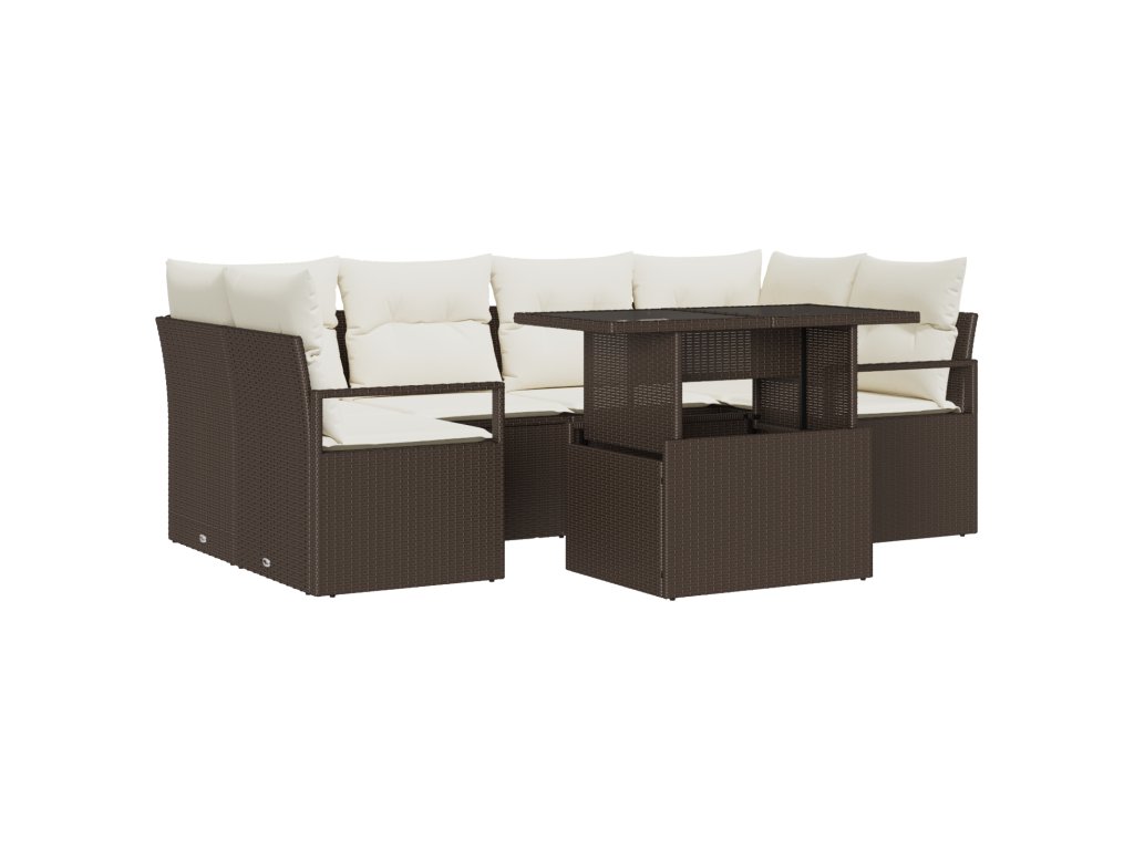 Set pohovek s polštářem 7 pcs Hnědá polyratan