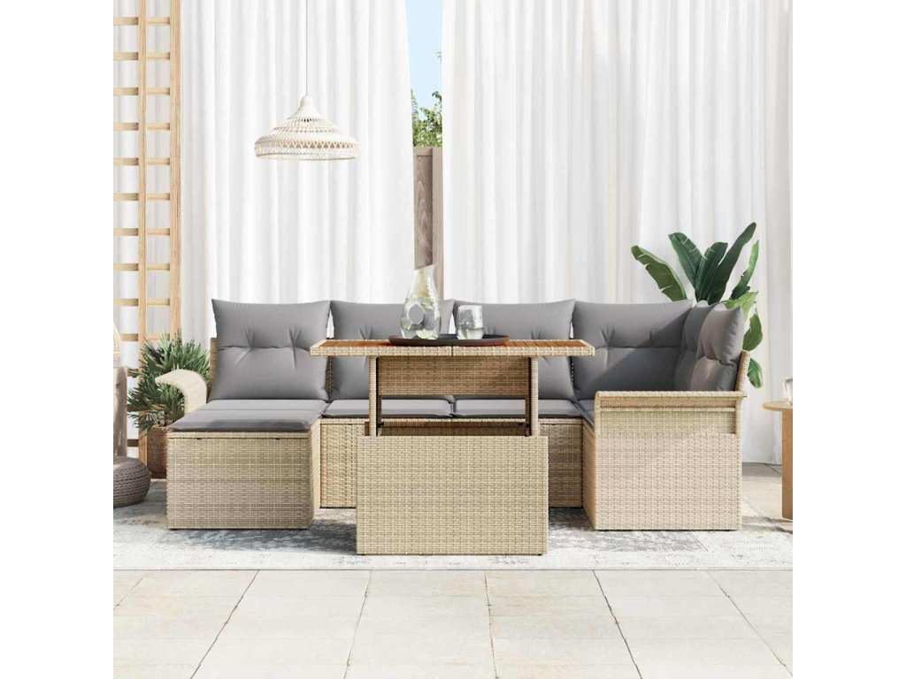 Sada zahradních pohovek s úložištěm 7 pcs Béžová Poly ratan