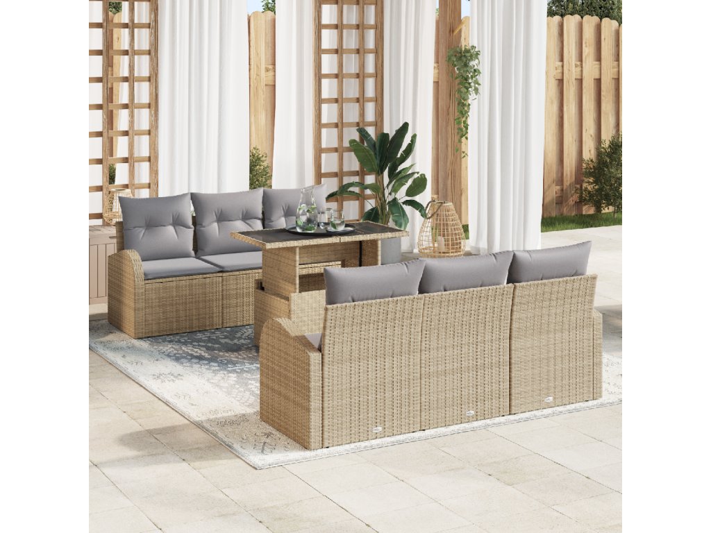 Sada zahradních pohovek s polštářem 7 pcs Béžová Poly ratan