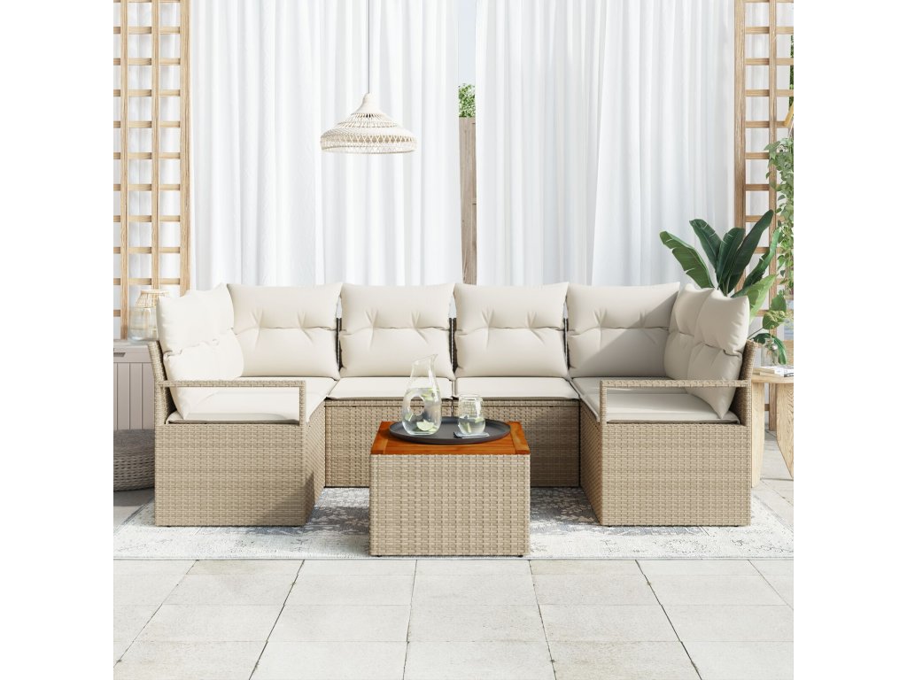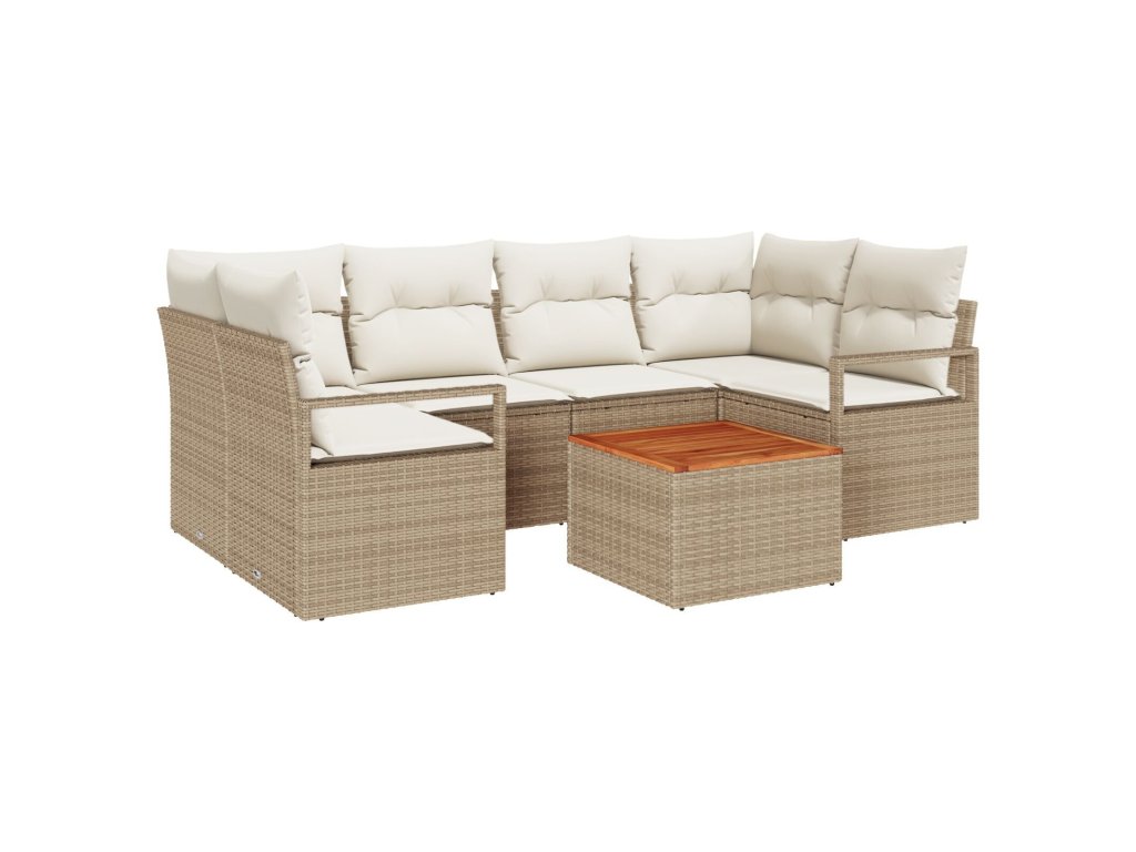 Sada zahradních pohovek s polštářem 7 pcs Béžová Poly ratan
