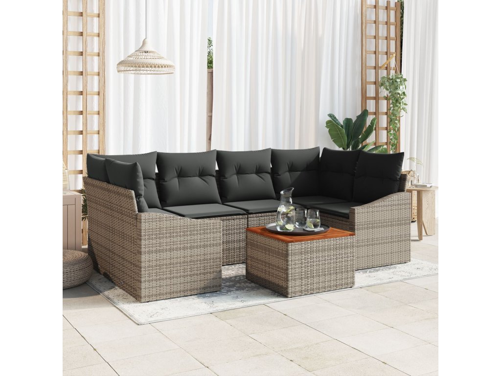 Sada zahradních pohovek s polštářem 7 pcs Šedá Poly ratan