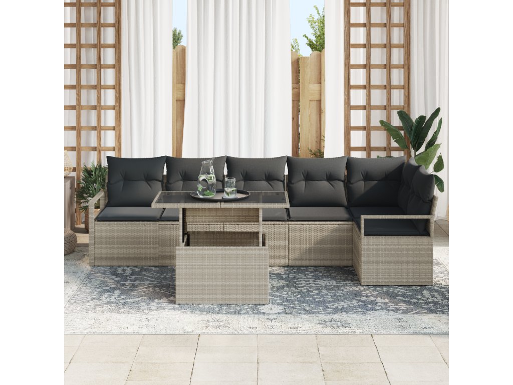 Sada zahradních pohovek s úložištěm 7 pcs Světle šedá polyratan