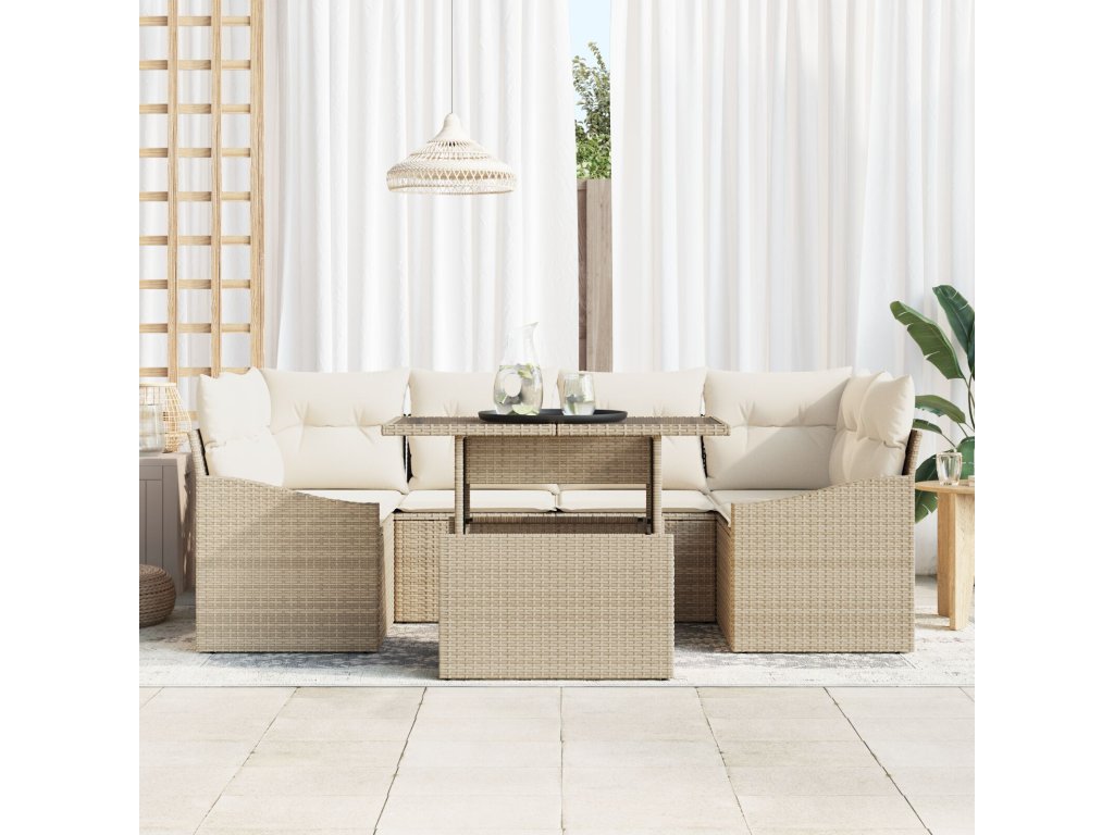 Sada zahradních pohovek 7 pcs Béžová a krémová polyratan