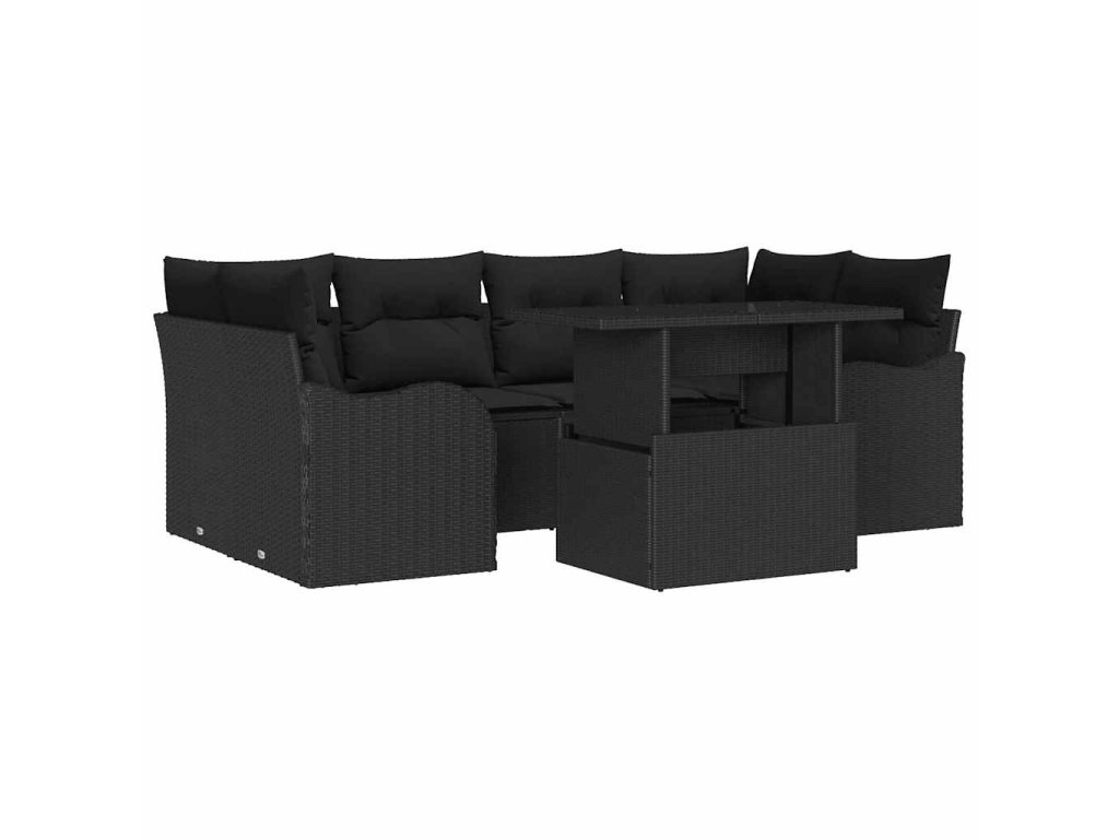Sada zahradních pohovek s polštářem 7 pcs Černá Poly Ratan
