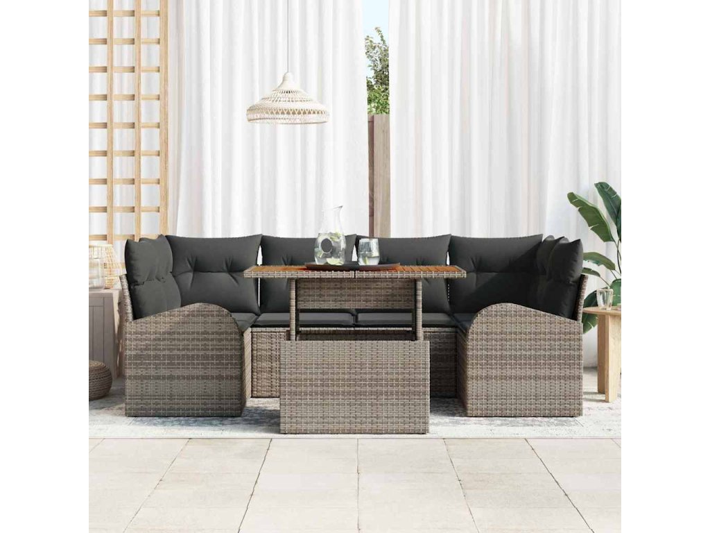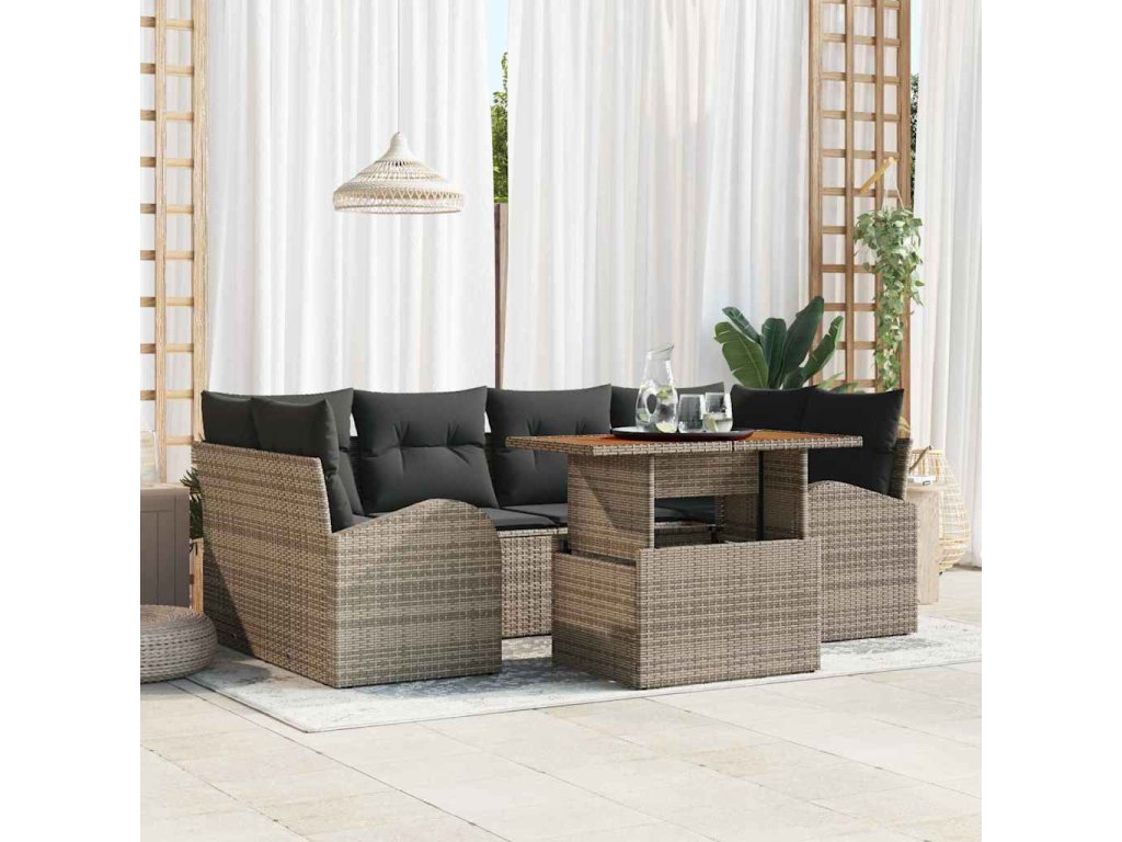 Sada zahradních pohovek s úložištěm 7 pcs Šedá Poly ratan