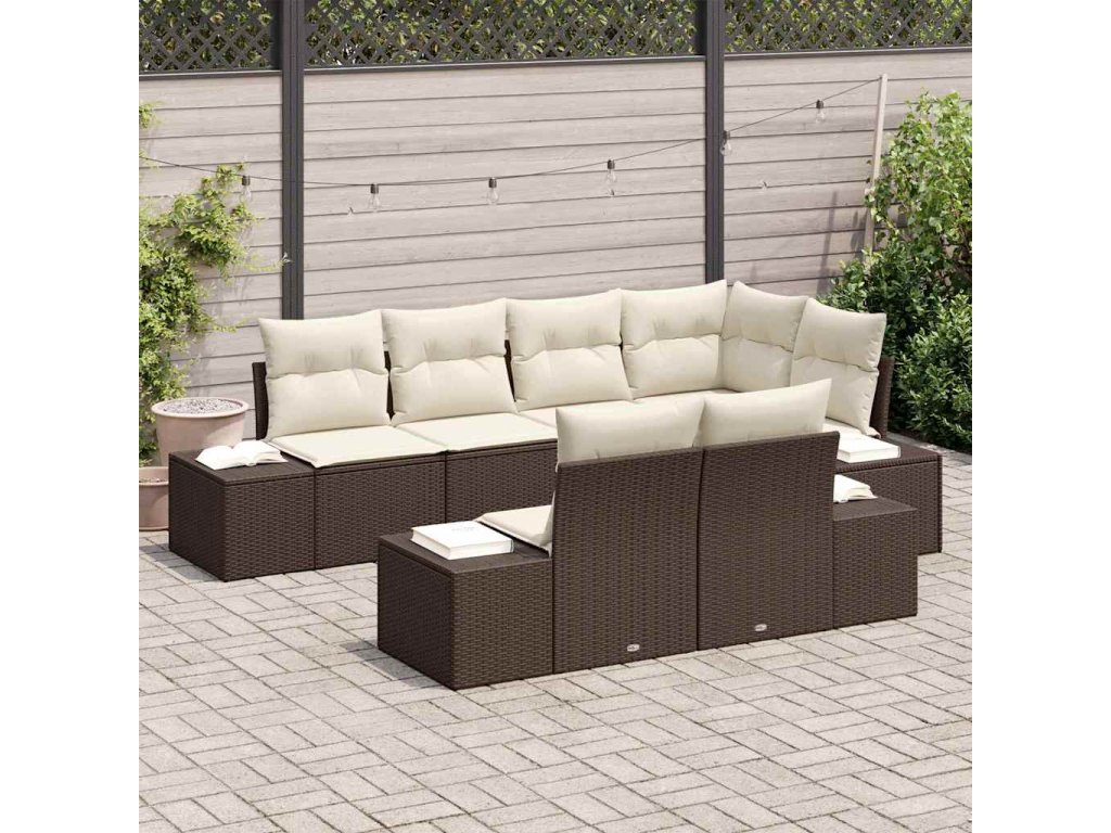 Sada zahradních pohovek s polštářem 7 pcs Hnědá a krémová