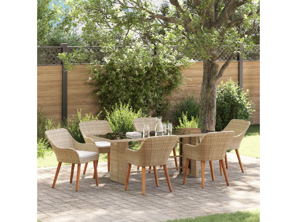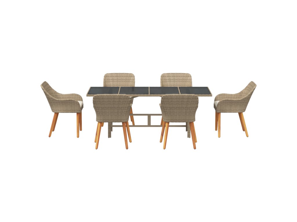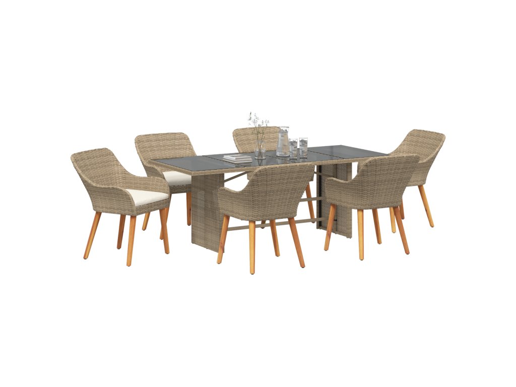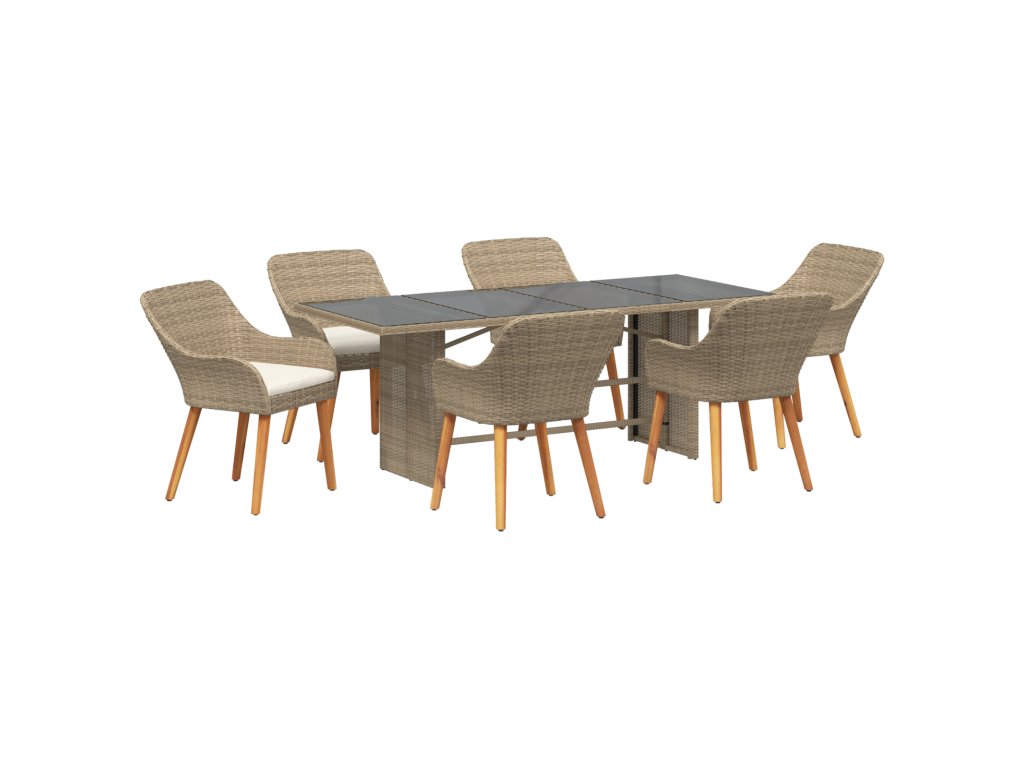 Zahradní jídelní souprava s polštářem 7 pcs Béžová polyratan