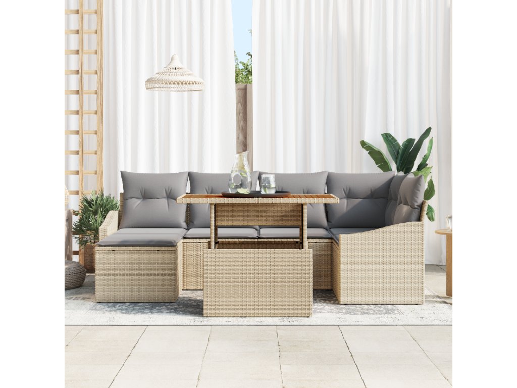 Zahradní jídelní souprava s polštářem 7 pcs Beige a šedá