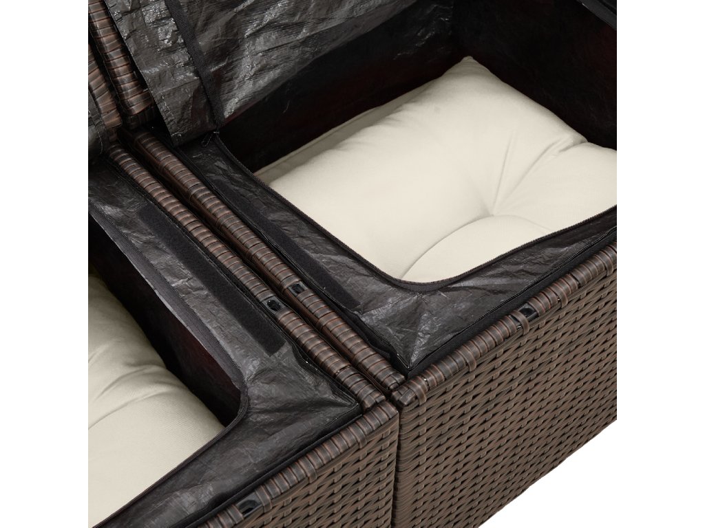 Materiály: Sada zahradních pohovek se skládá z poly ratanových vláken a práškově lakované oceli, která je pevná a trvanlivá. Poly ratan dodává elegantní vzhled, zatímco ocel poskytuje robustní strukturu pro dlouhou životnost. Součásti: S pohodlnými sedacími polštáři se zipem a poly ratanovými opěrkami se tahle sada hodí k funkčnosti. Každý segment obsahuje pěnové polstry pro větší pohodlí a modulární uspořádání si můžete přizpůsobit podle svých představ. Vlastnosti / funkce / design: Tato sada pohovek se snadno přizpůsobuje různým aranžmánům. Díky nízké hmotnosti ji můžete snadno přesouvat a upravit pro každou příležitost. UV-odolné materiály zajistí, že si vzhled zachová i za slunečna bez blednutí. Doporučené použití: Perfektní pro zahrady a terasy, tato sada přináší pohodlí a užitečnost do jakéhokoliv venkovního prostoru. Skvěle se hodí na prostornou terasu nebo na útulný balkón, kde vytvoří příjemnou zónu pro odpočinek a konverzaci. Údržba: Pro zajištění dlouhé životnosti zakrývejte sadu, když ji nepoužíváte. Tenhle jednoduchý krok spolu s pravidelnou kontrolou a údržbou jí pomůže zůstat v top stavu po spoustě let radosti.- Barva: Hnědá a krémová