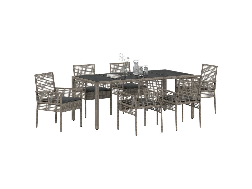 Zahradní jídelní souprava 7 pcs Šedá Poly ratan