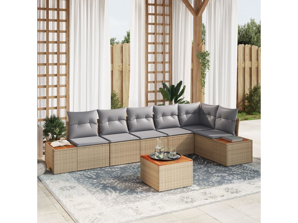Sada zahradních pohovek s polštářem 7 pcs Béžová Poly ratan