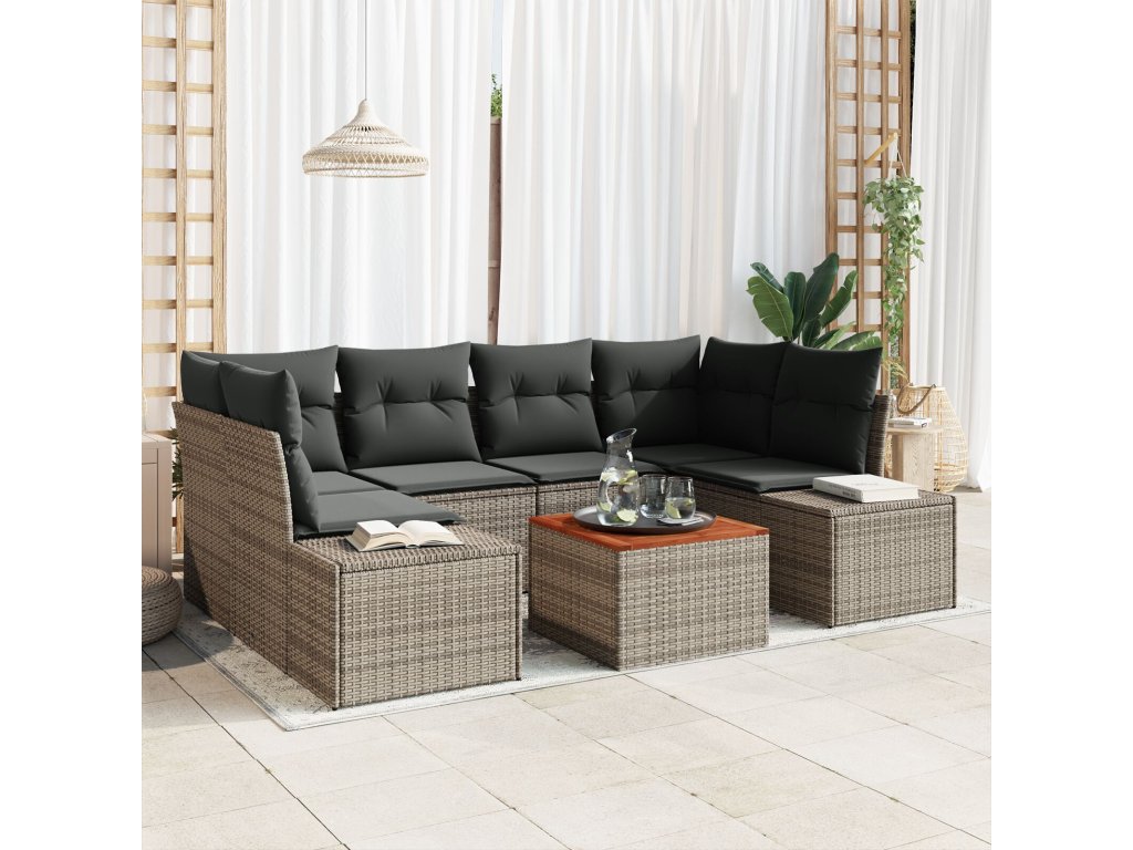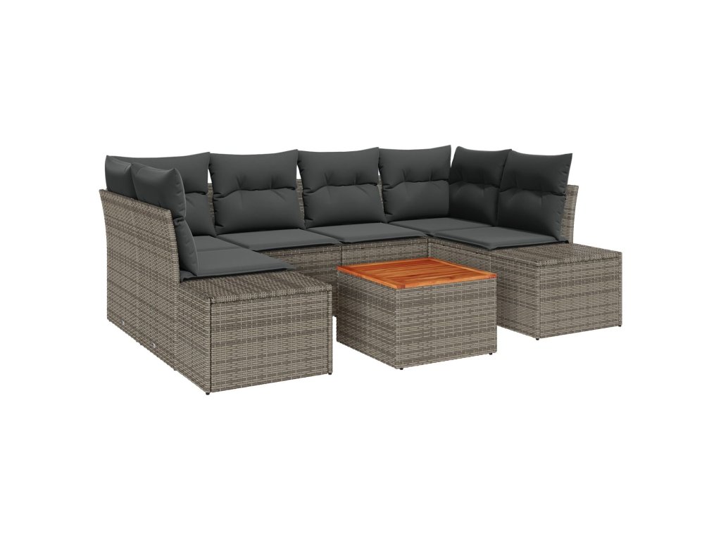 Sada zahradních pohovek s polštářem 7 pcs Šedá Poly ratan