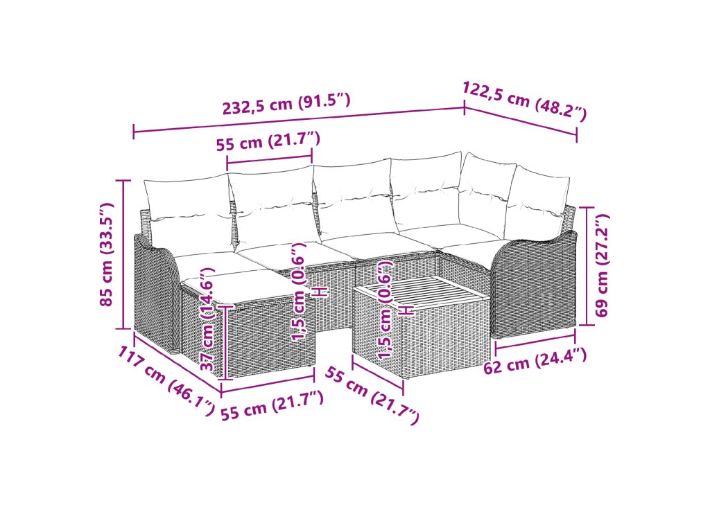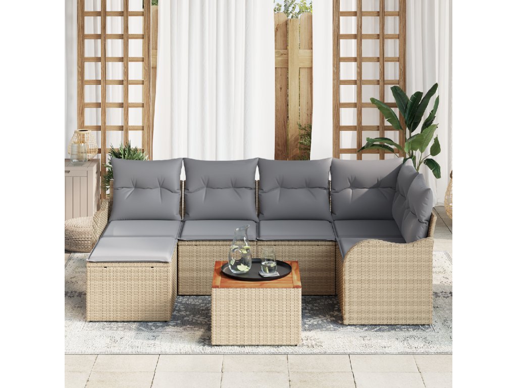 Sada zahradních pohovek 7 pcs Béžová Poly ratan