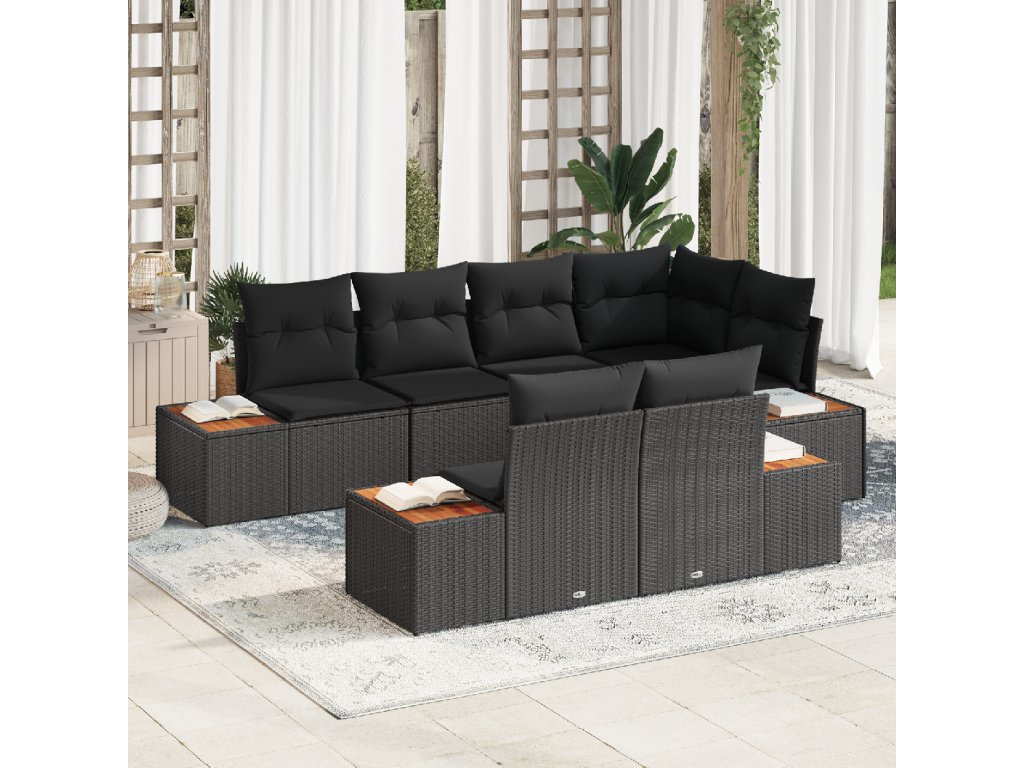Sada zahradních pohovek s polštářem 7 pcs Černá polyratan