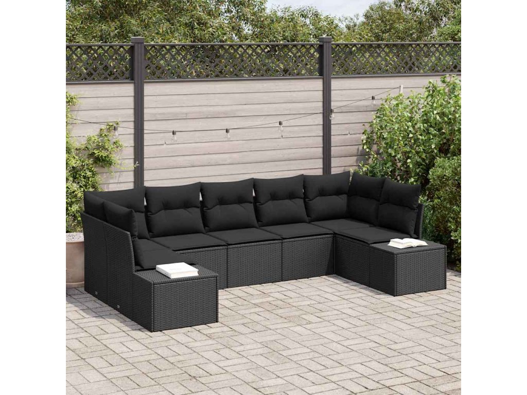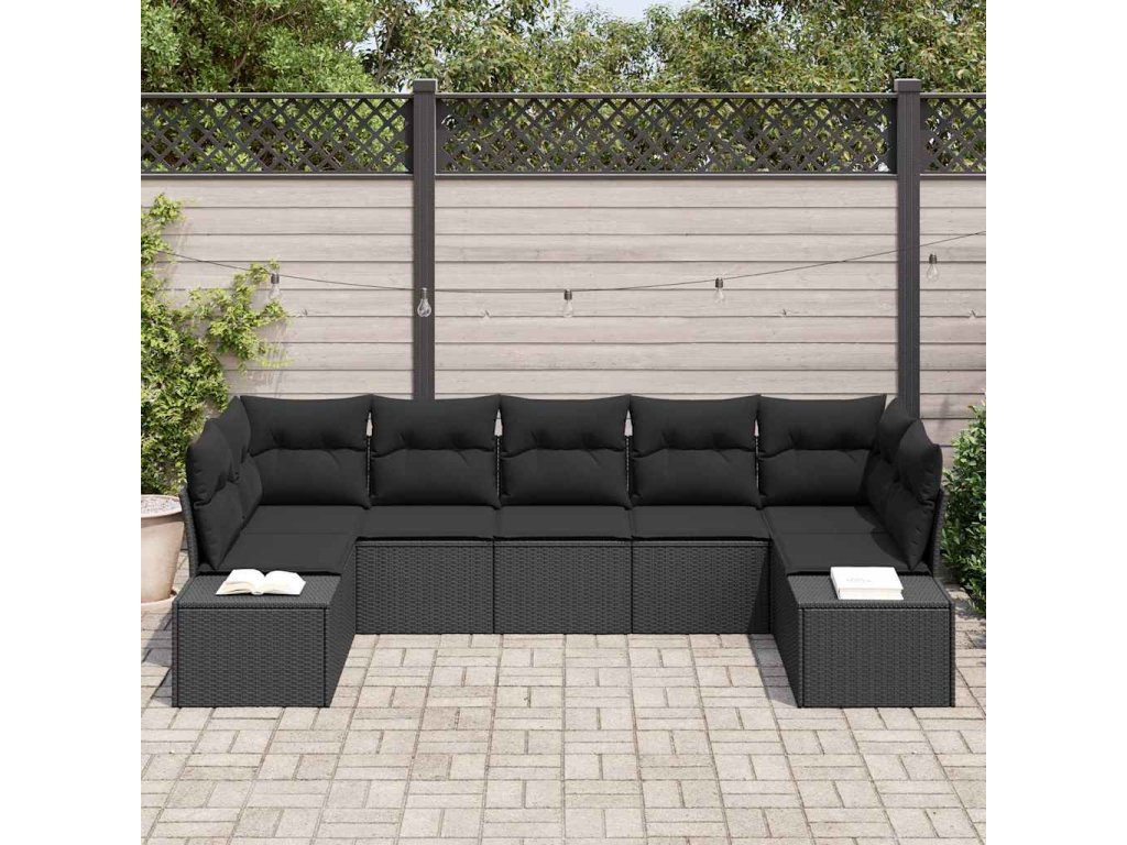 Sada zahradních pohovek s polštářem 7 pcs Černá Poly ratan
