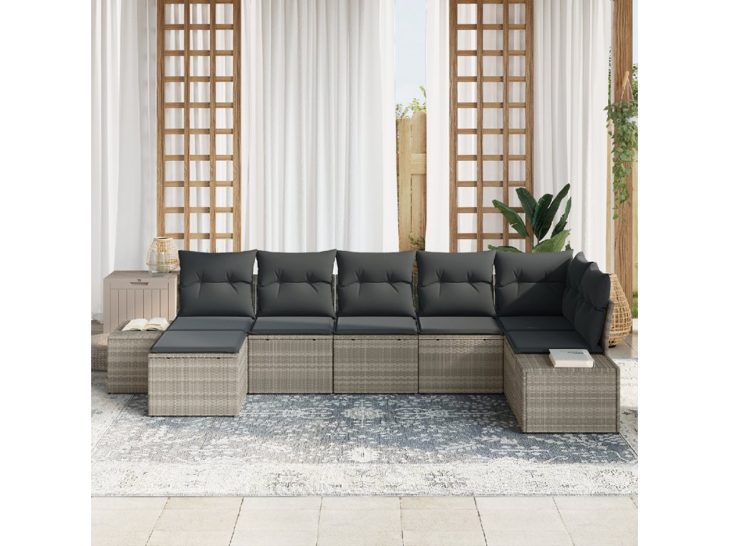 Sada zahradních pohovek s polštářem 7 pcs Světle šedá polyratan