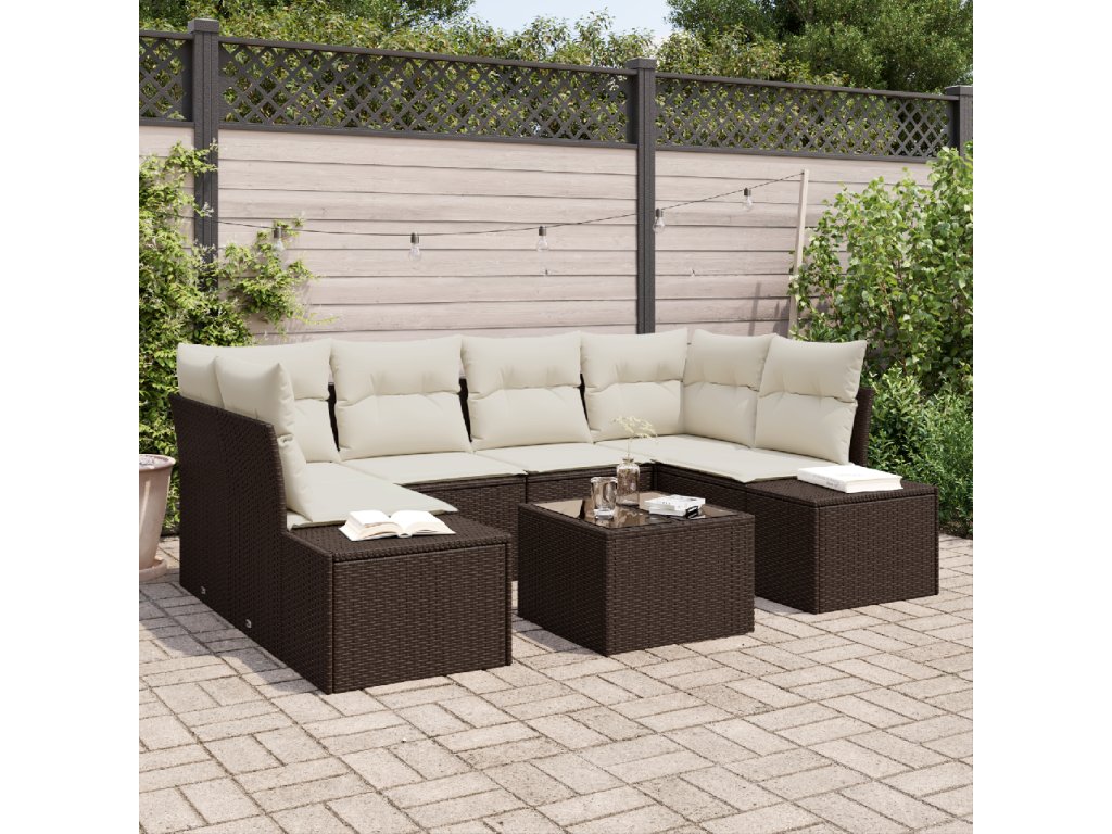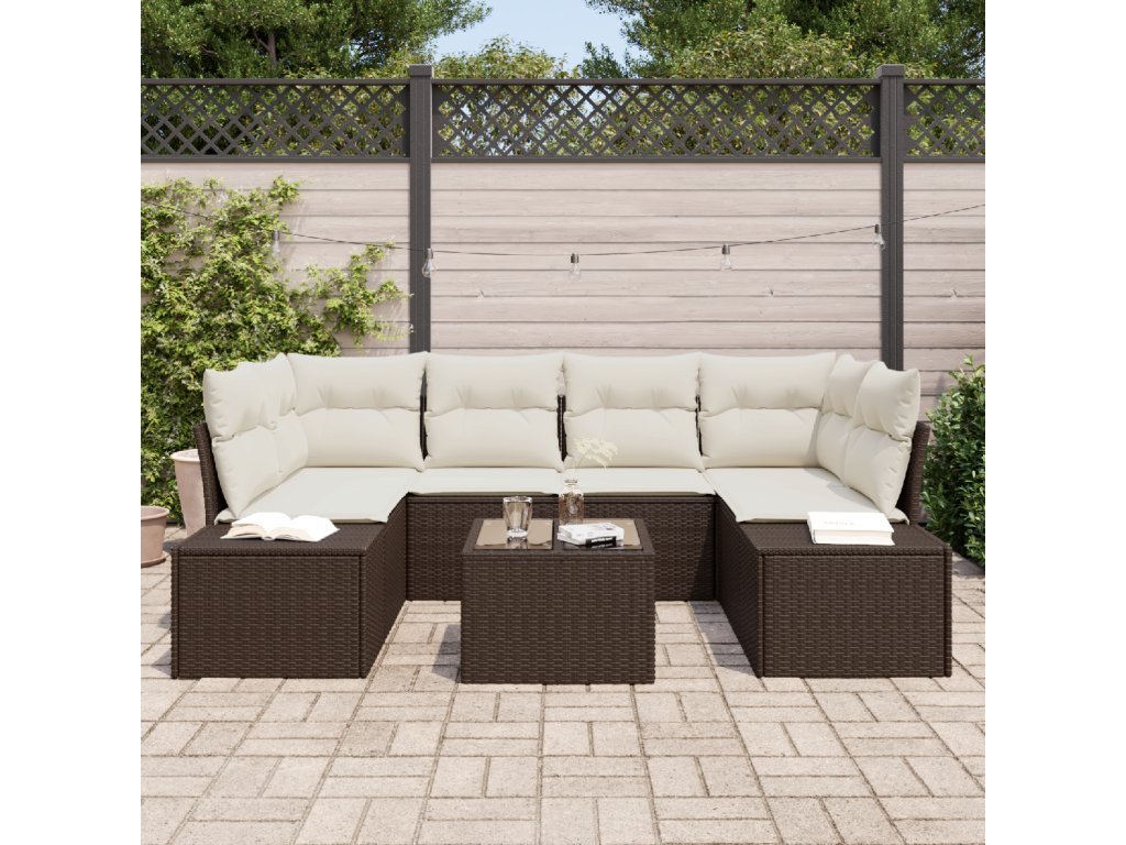 Sada zahradních pohovek s polštářem 7 pcs Hnědá polyratan