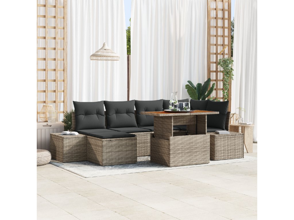 Zahradní jídelní souprava s polštářem 7 pcs Šedá a hnědá