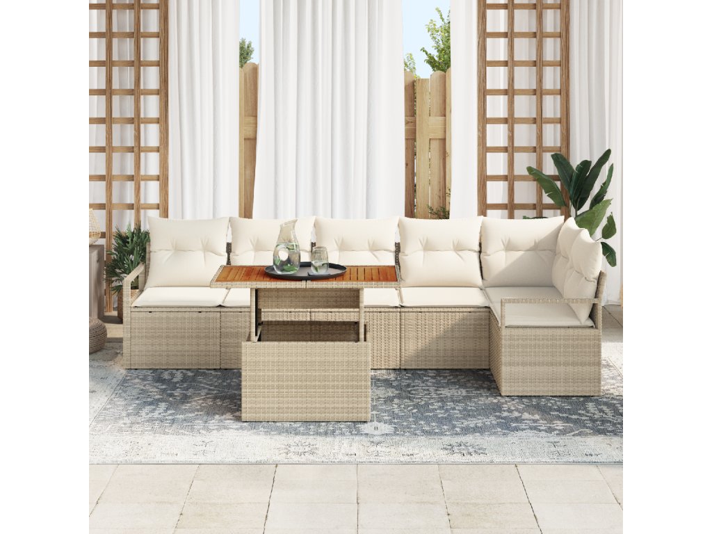 Zahradní jídelní souprava s polštářem 7 pcs Béžová a krémová
