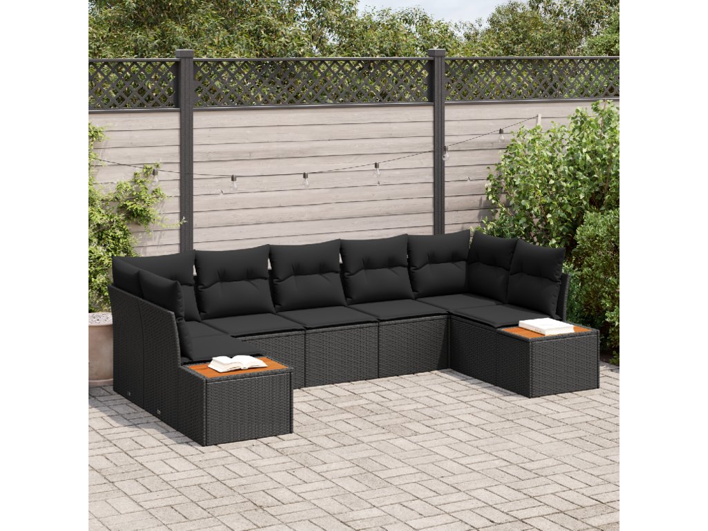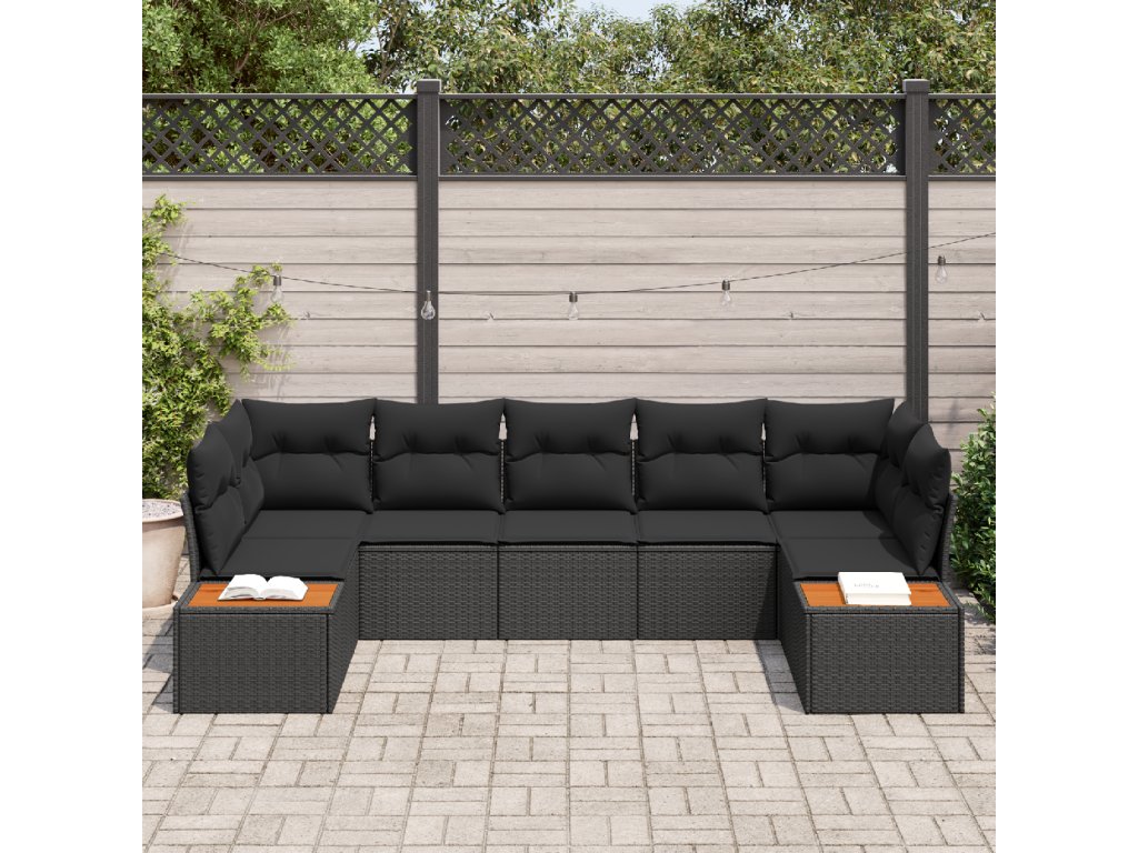 Sada zahradních pohovek s polštářem 7 pcs Černá polyratan