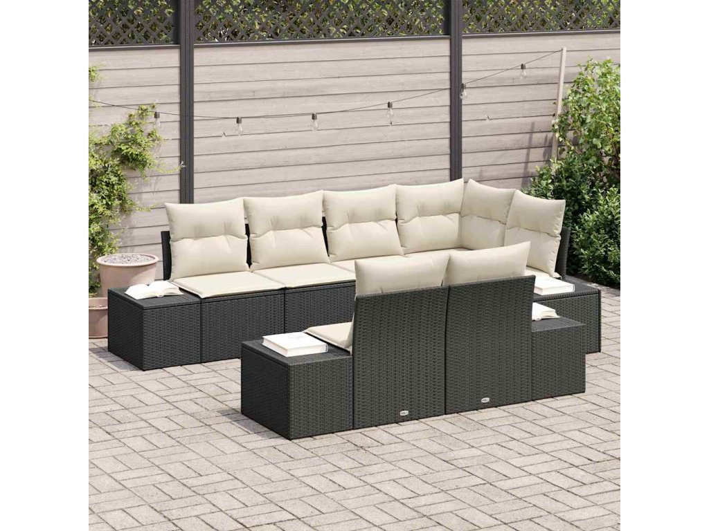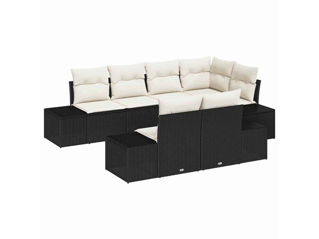 Sada zahradních pohovek s polštářem 7 pcs Černá a krémová
