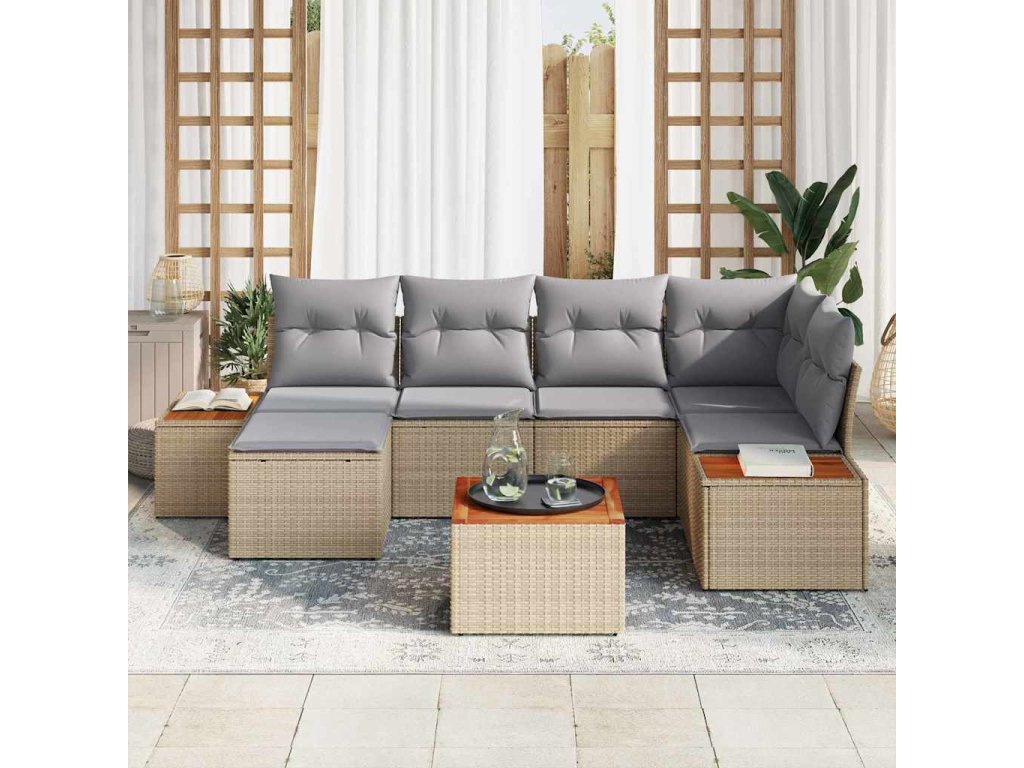 Sada zahradních pohovek 7 pcs béžová a světle šedá Poly Ratan