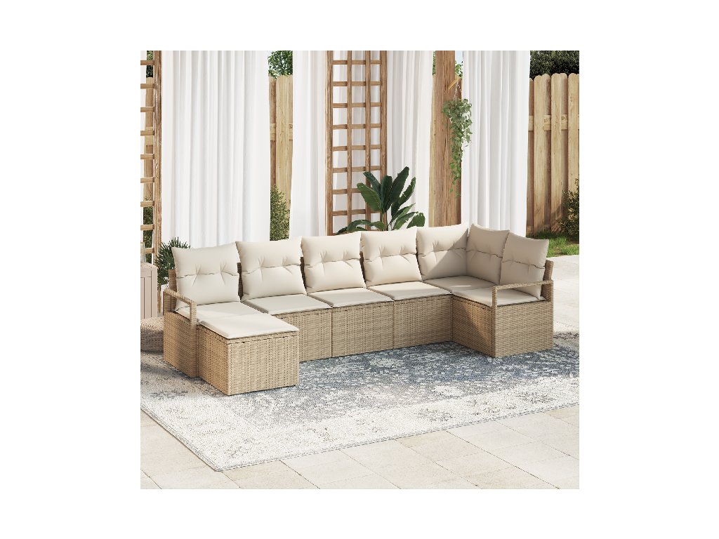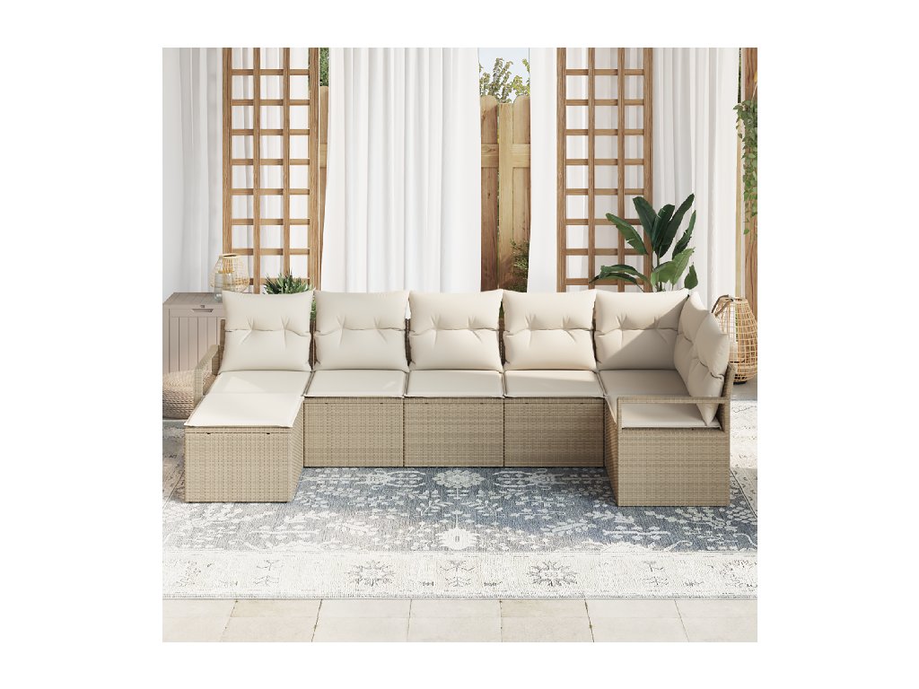 Set pohovek s polštářem 7 pcs Béžová a krémová polyratan